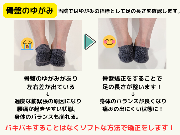 当院ではバキバキしないソフトなもみほぐし、骨格矯正を行いますのでどなたでも安心して施術を受けることができます!