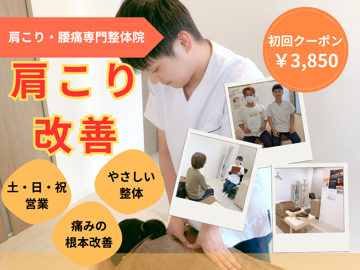 肩こりで悩んでいる方、ぜひ当院の根本改善を目的とした施術で肩こりのケアをしませんか?
